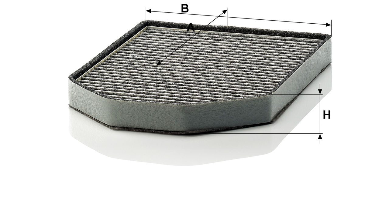 High-quality MANN-FILTER cabin filters with active carbon - nearly 100% protection from particles like pollen, diesel soot & tyre abrasion / Additional protection from harmful gases & unpleasant odour. The trated highly-effective activated carbon gives protection against harmful gases such as ozone, nitrogen oxide or sulphur dioxide and eliminates unpleasant odours during the entire service interval.Specification