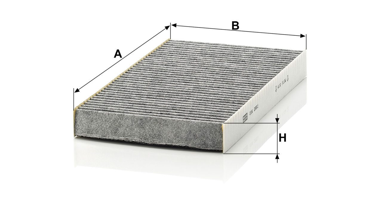 High-quality MANN-FILTER cabin filters with active carbon - nearly 100% protection from particles like pollen, diesel soot & tyre abrasion / Additional protection from harmful gases & unpleasant odour. The trated highly-effective activated carbon gives protection against harmful gases such as ozone, nitrogen oxide or sulphur dioxide and eliminates unpleasant odours during the entire service interval.