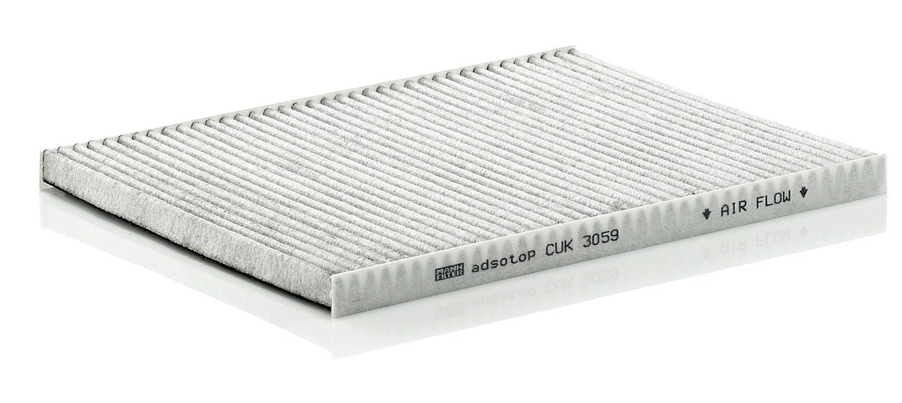 High-quality MANN-FILTER cabin filters with active carbon - nearly 100% protection from particles like pollen, diesel soot & tyre abrasion / Additional protection from harmful gases & unpleasant odour. The trated highly-effective activated carbon gives protection against harmful gases such as ozone, nitrogen oxide or sulphur dioxide and eliminates unpleasant odours during the entire service interval.