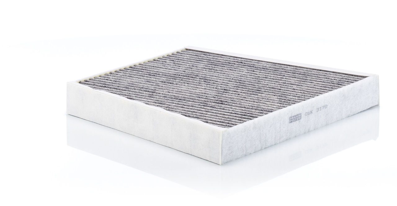 High-quality MANN-FILTER cabin filters with active carbon - nearly 100% protection from particles like pollen, diesel soot & tyre abrasion / Additional protection from harmful gases & unpleasant odour. The trated highly-effective activated carbon gives protection against harmful gases such as ozone, nitrogen oxide or sulphur dioxide and eliminates unpleasant odours during the entire service interval.