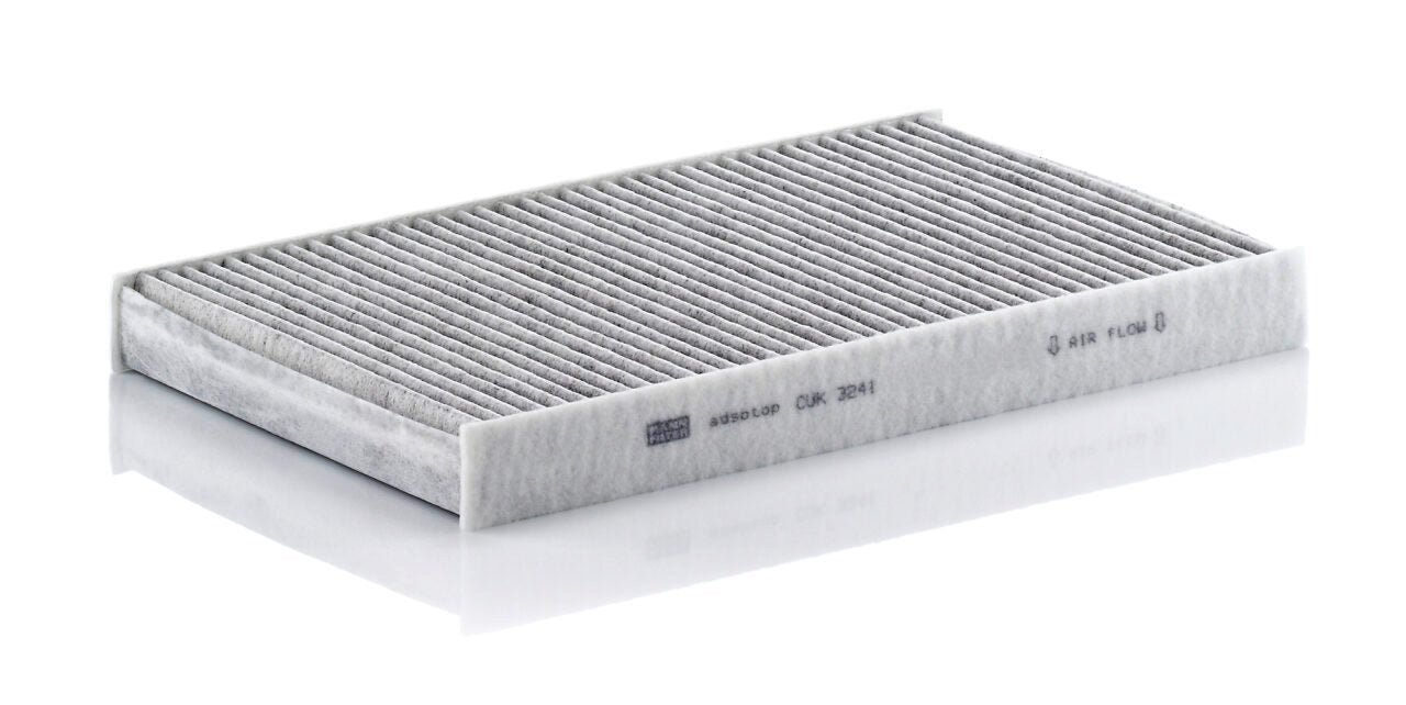 High-quality MANN-FILTER cabin filters with active carbon - nearly 100% protection from particles like pollen, diesel soot & tyre abrasion / Additional protection from harmful gases & unpleasant odour. The trated highly-effective activated carbon gives protection against harmful gases such as ozone, nitrogen oxide or sulphur dioxide and eliminates unpleasant odours during the entire service interval.