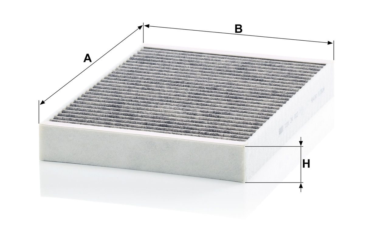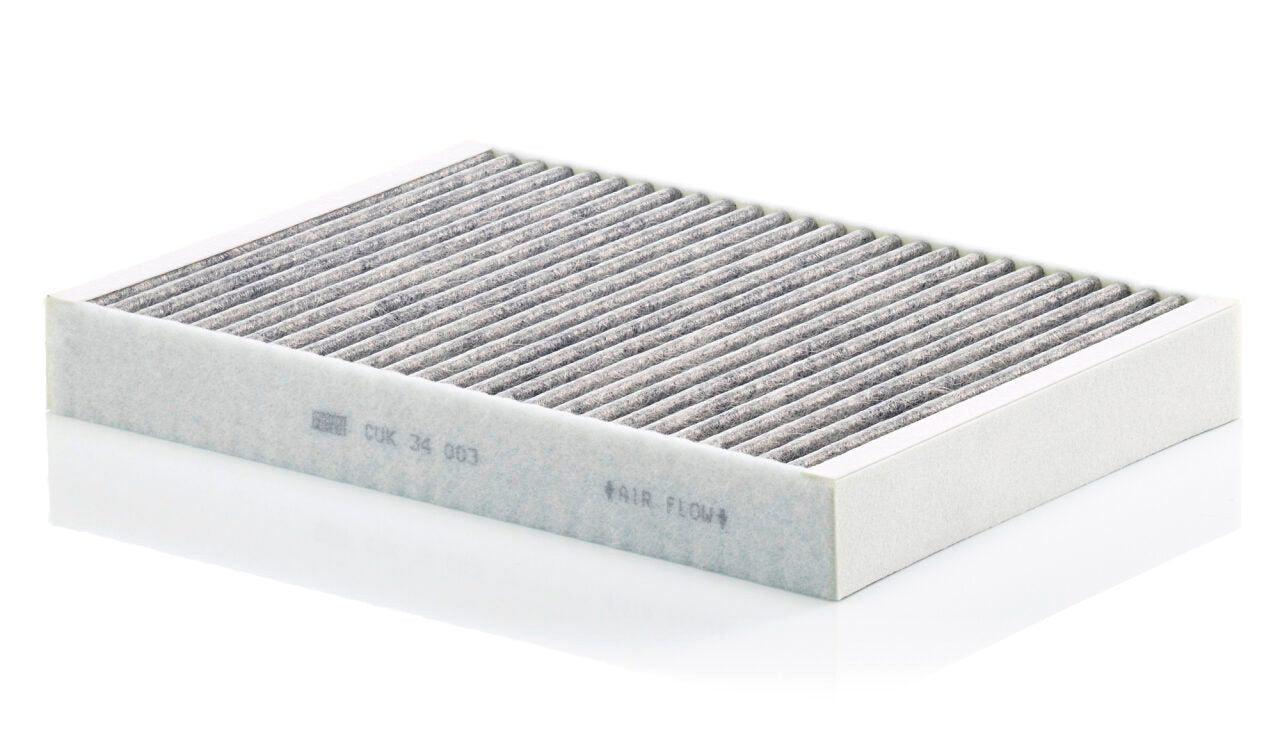 High-quality MANN-FILTER cabin filters with active carbon - nearly 100% protection from particles like pollen, diesel soot & tyre abrasion / Additional protection from harmful gases & unpleasant odour. The trated highly-effective activated carbon gives protection against harmful gases such as ozone, nitrogen oxide or sulphur dioxide and eliminates unpleasant odours during the entire service interval.