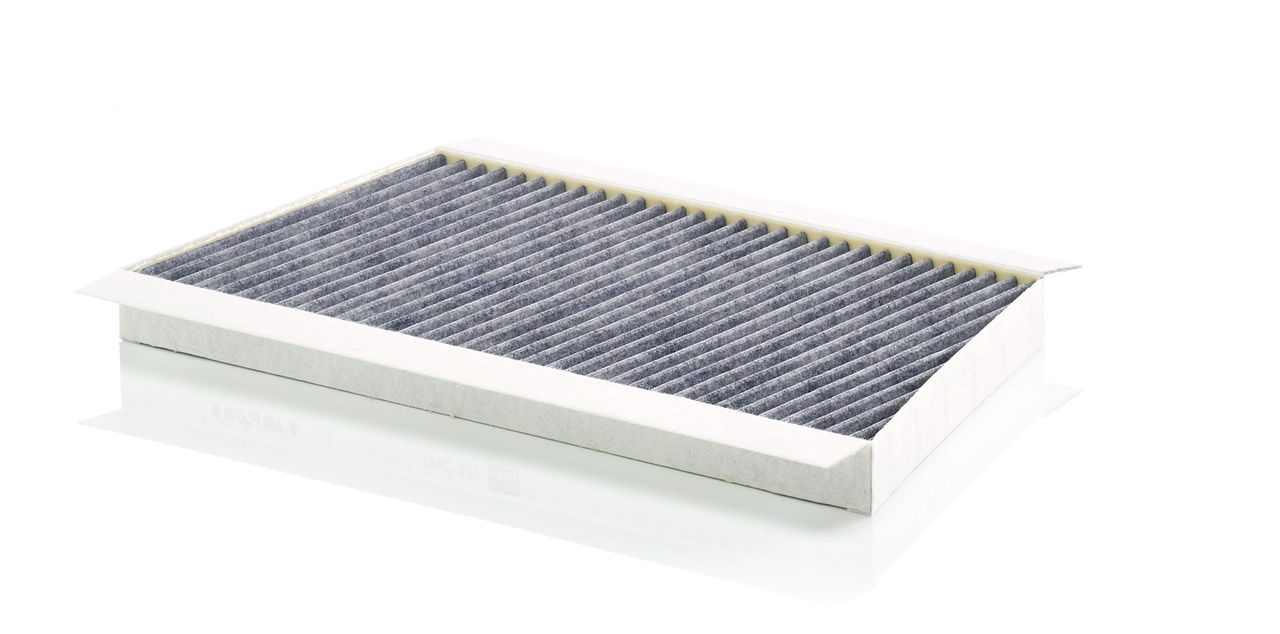High-quality MANN-FILTER cabin filters with active carbon - nearly 100% protection from particles like pollen, diesel soot & tyre abrasion / Additional protection from harmful gases & unpleasant odour. The trated highly-effective activated carbon gives protection against harmful gases such as ozone, nitrogen oxide or sulphur dioxide and eliminates unpleasant odours during the entire service interval.