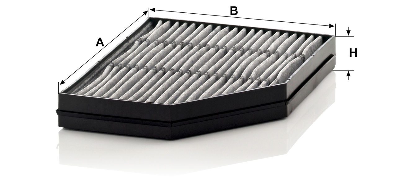 High-quality MANN-FILTER cabin filters with active carbon - nearly 100% protection from particles like pollen, diesel soot & tyre abrasion / Additional protection from harmful gases & unpleasant odour. The trated highly-effective activated carbon gives protection against harmful gases such as ozone, nitrogen oxide or sulphur dioxide and eliminates unpleasant odours during the entire service interval.