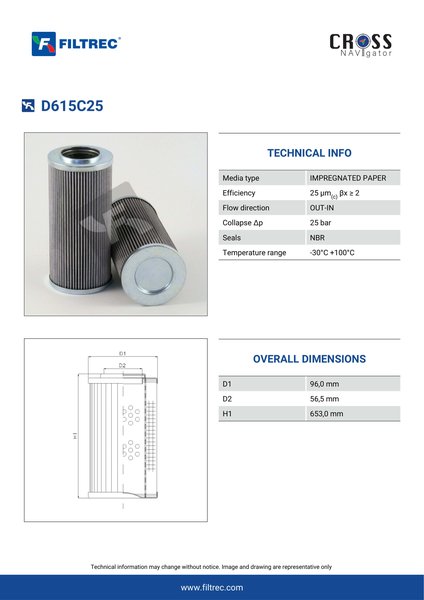 Genuine Filtrec D615C25. This Filtrec element is designed to meet or exceed the quality and performance of brand OEM’s ensuring superior filtration performance and long-lasting durability.
