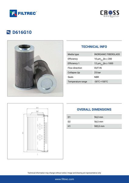 Engineered with their high performance media and a durable design, the D616G10 provides reliable and consistent performance over its lifespan, even in harsh operating environments. When you order from FilterFinder, you can trust that you are getting a reliable and high-quality replacement filter that will keep your system running smoothly.