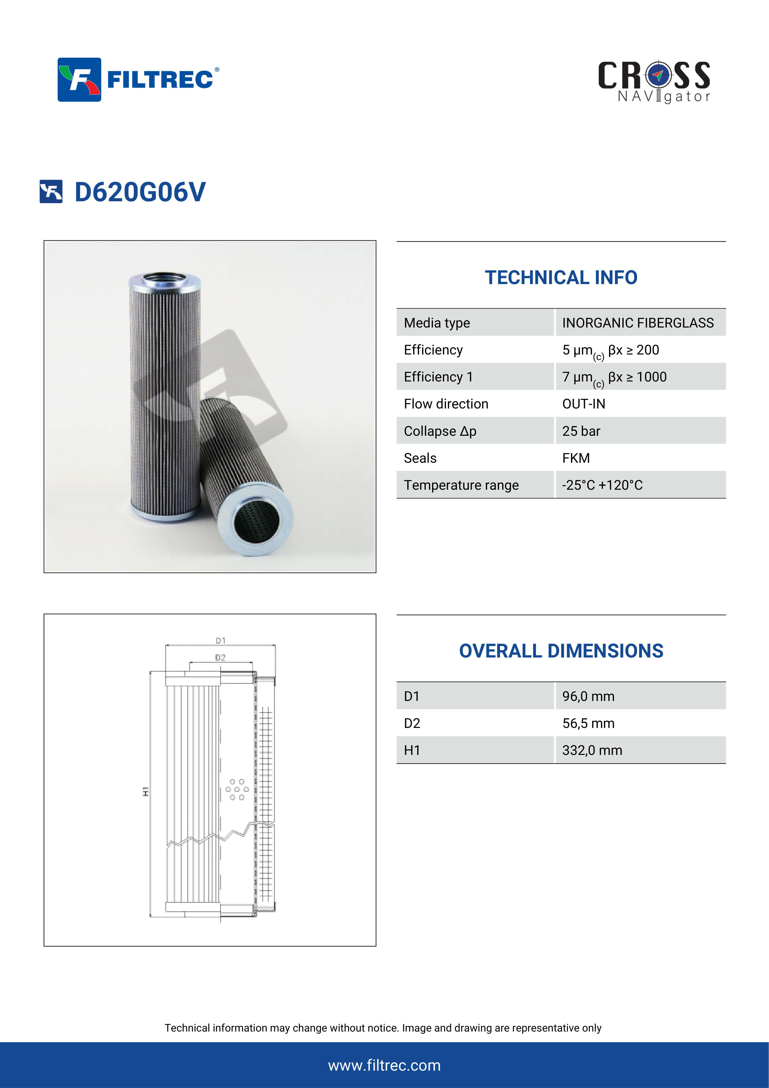 Genuine Filtrec D620G06V. This Filtrec element is designed to meet or exceed the quality and performance of brand OEM’s ensuring superior filtration performance and long-lasting durability.