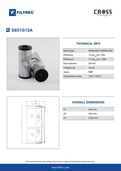 Engineered with their high performance media and a durable design, the D651G15A provides reliable and consistent performance over its lifespan, even in harsh operating environments. When you order from FilterFinder, you can trust that you are getting a reliable and high-quality replacement filter that will keep your system running smoothly.
