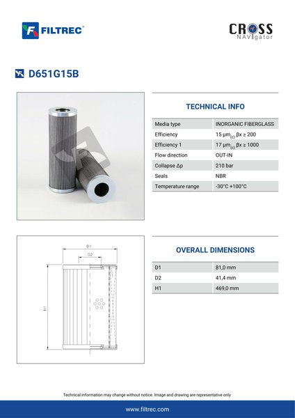 Engineered with their high performance media and a durable design, the D651G15B provides reliable and consistent performance over its lifespan, even in harsh operating environments. When you order from FilterFinder, you can trust that you are getting a reliable and high-quality replacement filter that will keep your system running smoothly.