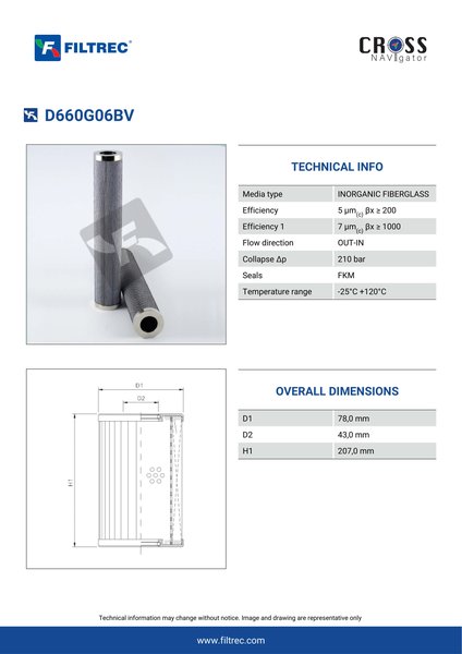 Genuine Filtrec D660G06BV. This Filtrec element is designed to meet or exceed the quality and performance of brand OEM’s ensuring superior filtration performance and long-lasting durability.