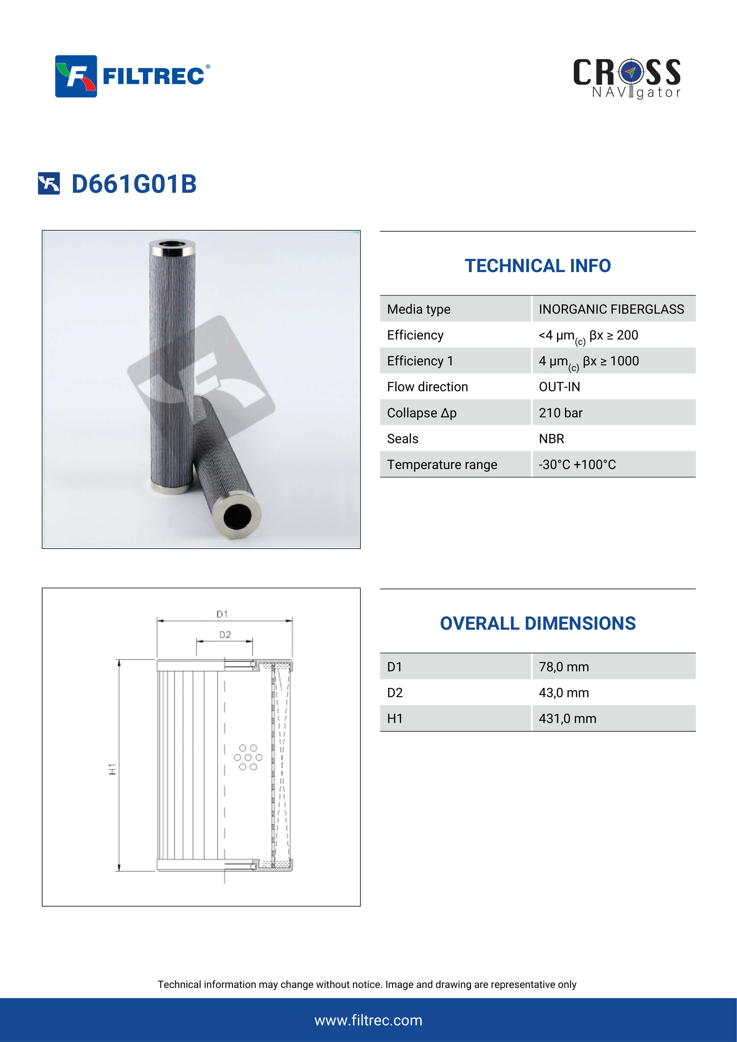 Genuine Filtrec D661G01B. This Filtrec element is designed to meet or exceed the quality and performance of brand OEM’s ensuring superior filtration performance and long-lasting durability.