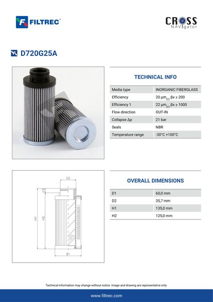 The efficiency of the element is shown using the Micron (µ) and Beta (β) ratings. The micron rating indicates the size of the particle being filtered and the beta rating the efficiency, calculated as 1/β.