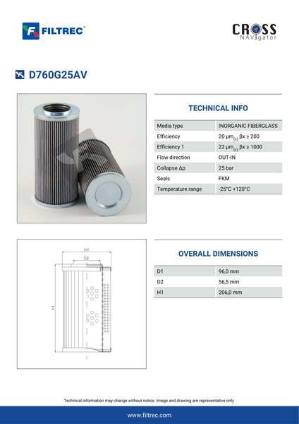 Genuine Filtrec D760G25AV. This Filtrec element is designed to meet or exceed the quality and performance of brand OEM’s ensuring superior filtration performance and long-lasting durability.