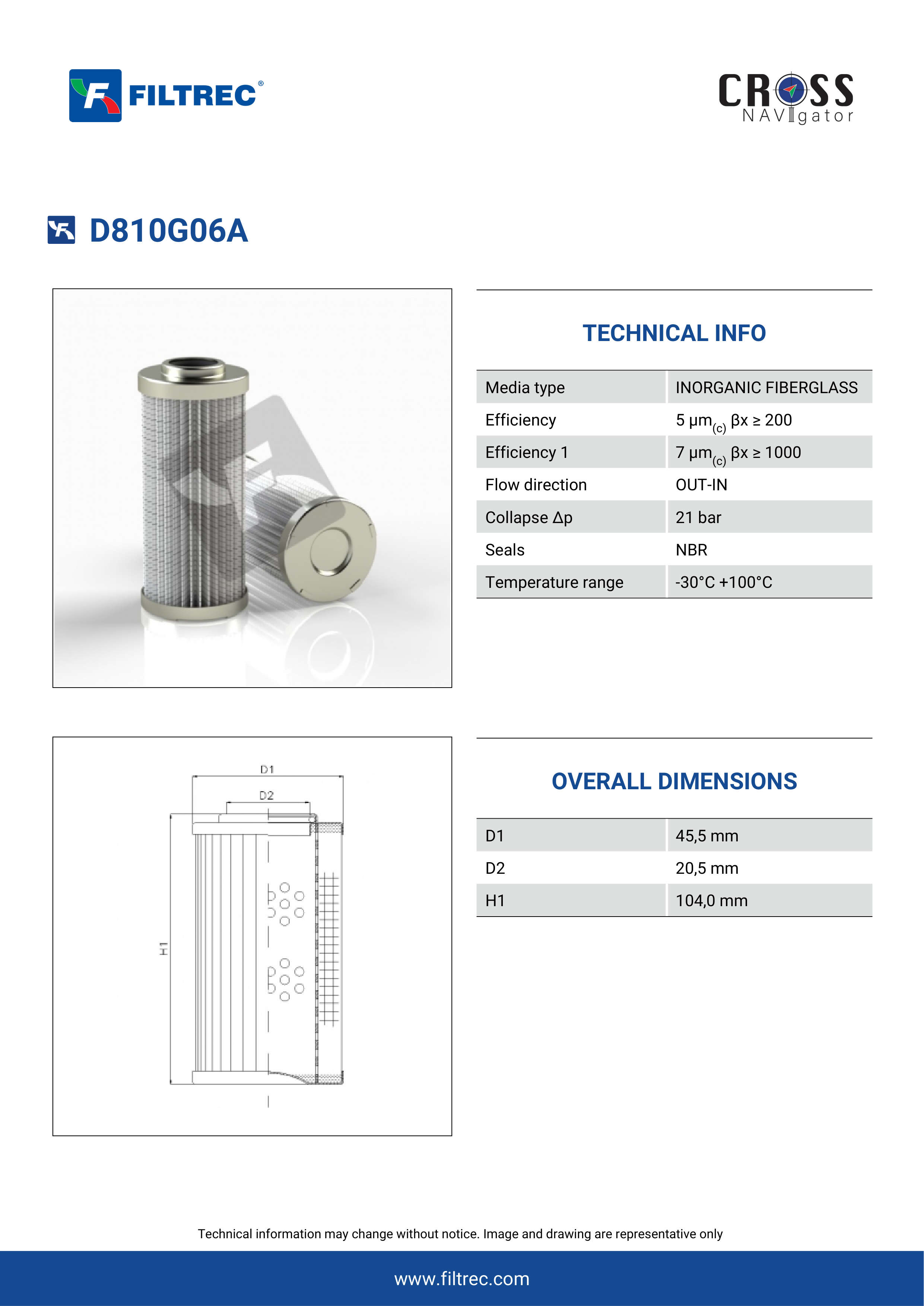 Genuine Filtrec D810G06A. This Filtrec element is designed to meet or exceed the quality and performance of brand OEM’s ensuring superior filtration performance and long-lasting durability.