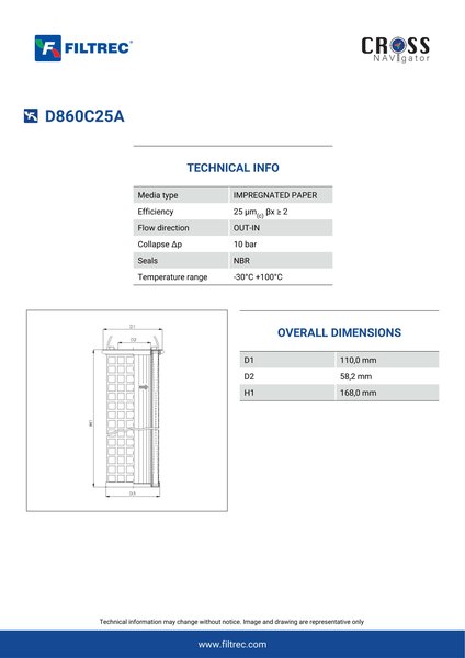 Genuine Filtrec D860C25A. This Filtrec element is designed to meet or exceed the quality and performance of brand OEM’s ensuring superior filtration performance and long-lasting durability.