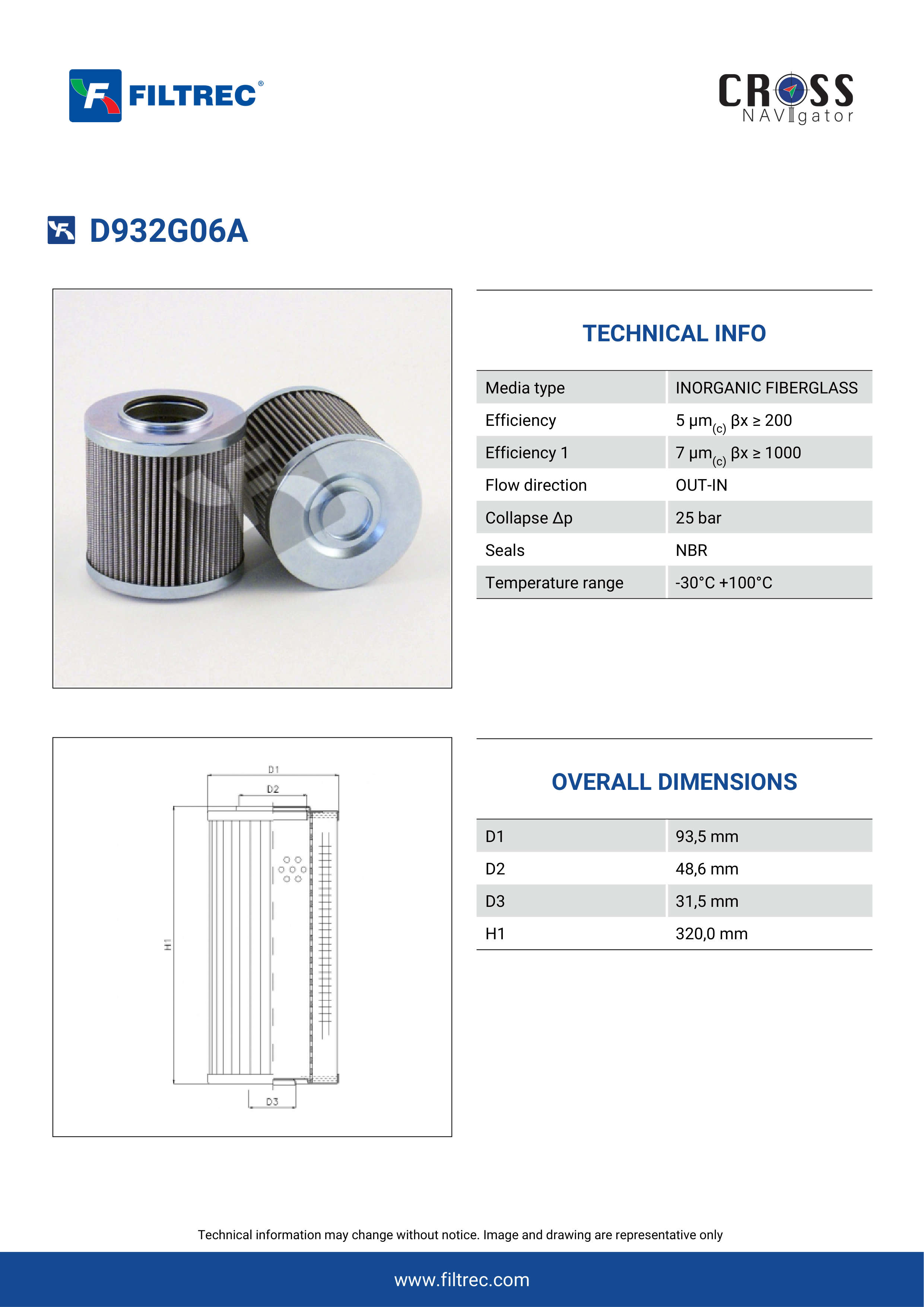 Genuine Filtrec D932G06A. This Filtrec element is designed to meet or exceed the quality and performance of brand OEM’s ensuring superior filtration performance and long-lasting durability.