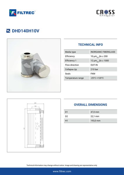 The efficiency of the element is shown using the Micron (µ) and Beta (β) ratings. The micron rating indicates the size of the particle being filtered and the beta rating the efficiency, calculated as 1/β.