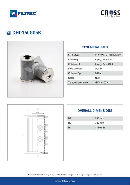 Genuine Filtrec DHD160G05B. This Filtrec element is designed to meet or exceed the quality and performance of brand OEM’s ensuring superior filtration performance and long-lasting durability.