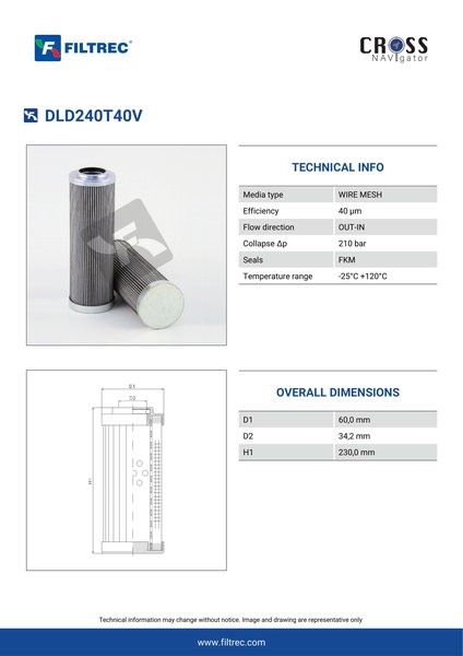 The efficiency of the element is shown using the Micron (µ) and Beta (β) ratings. The micron rating indicates the size of the particle being filtered and the beta rating the efficiency, calculated as 1/β.