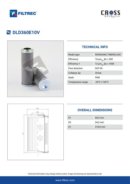 The efficiency of the element is shown using the Micron (µ) and Beta (β) ratings. The micron rating indicates the size of the particle being filtered and the beta rating the efficiency, calculated as 1/β.