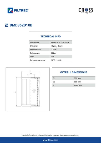 The efficiency of the element is shown using the Micron (µ) and Beta (β) ratings. The micron rating indicates the size of the particle being filtered and the beta rating the efficiency, calculated as 1/β.