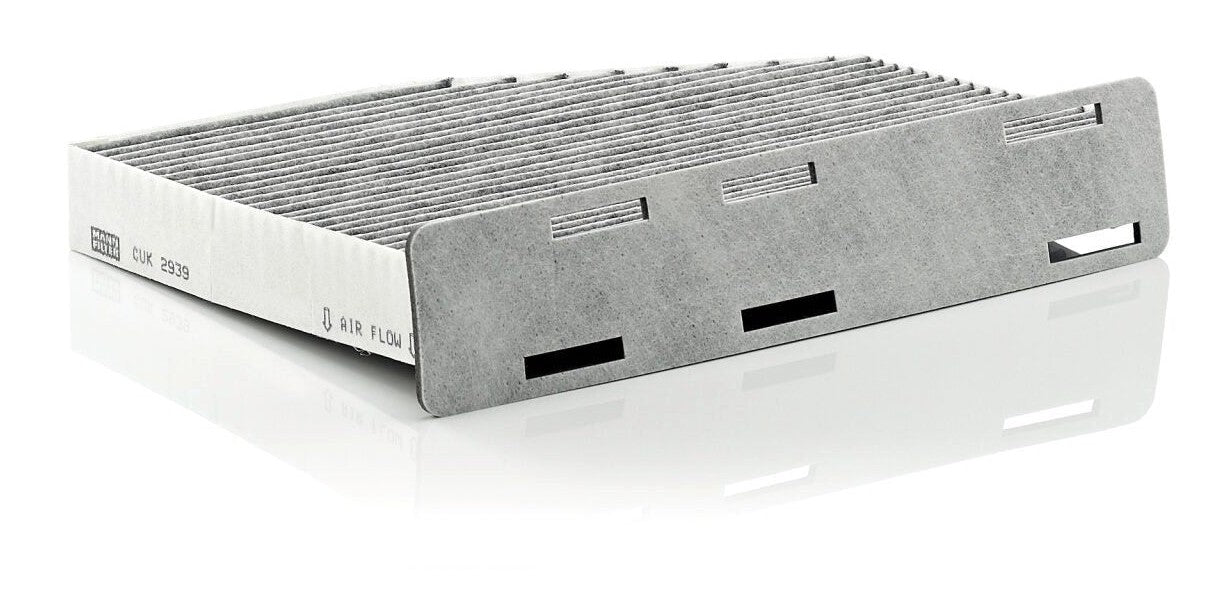High-quality MANN-FILTER cabin filters with active carbon - nearly 100% protection from particles like pollen, diesel soot & tyre abrasion / Additional protection from harmful gases & unpleasant odour. The trated highly-effective activated carbon gives protection against harmful gases such as ozone, nitrogen oxide or sulphur dioxide and eliminates unpleasant odours during the entire service interval.