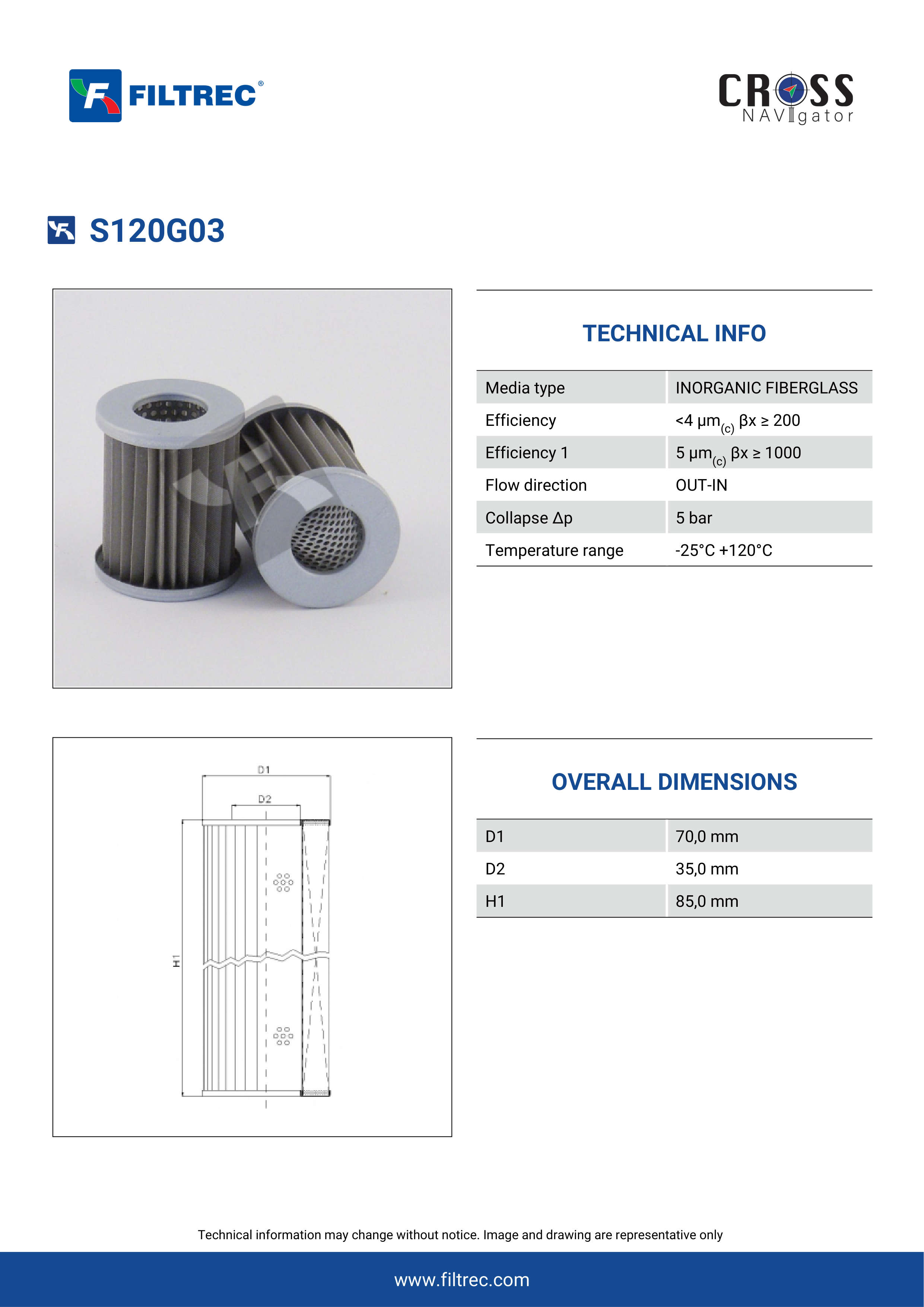 Genuine Filtrec S120G03. This Filtrec element is designed to meet or exceed the quality and performance of brand OEM’s ensuring superior filtration performance and long-lasting durability.
