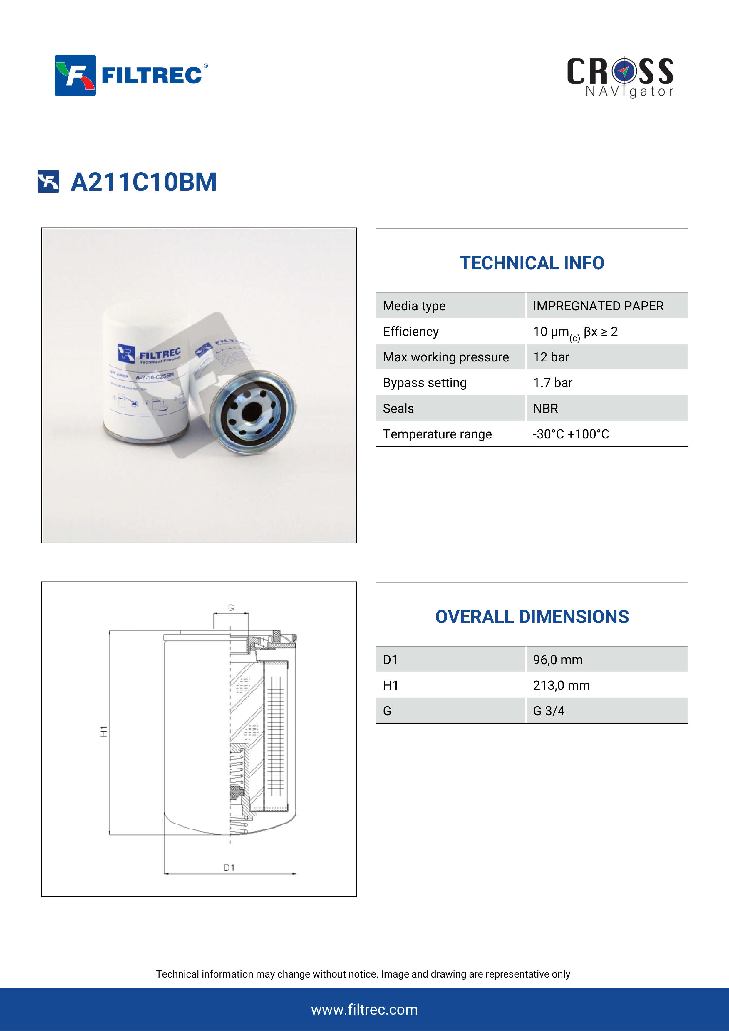 Genuine Filtrec A211C10BM. This Filtrec element is designed to meet or exceed the quality and performance of brand OEM’s ensuring superior filtration performance and long-lasting durability.Engineered with their high performance media and a durable design, the A211C10BM provides reliable and consistent performance over its lifespan, even in harsh operating environments. When you order from FilterFinder, you can trust that you are getting a reliable and high-quality replacement filter that will keep your system running smoothly.
