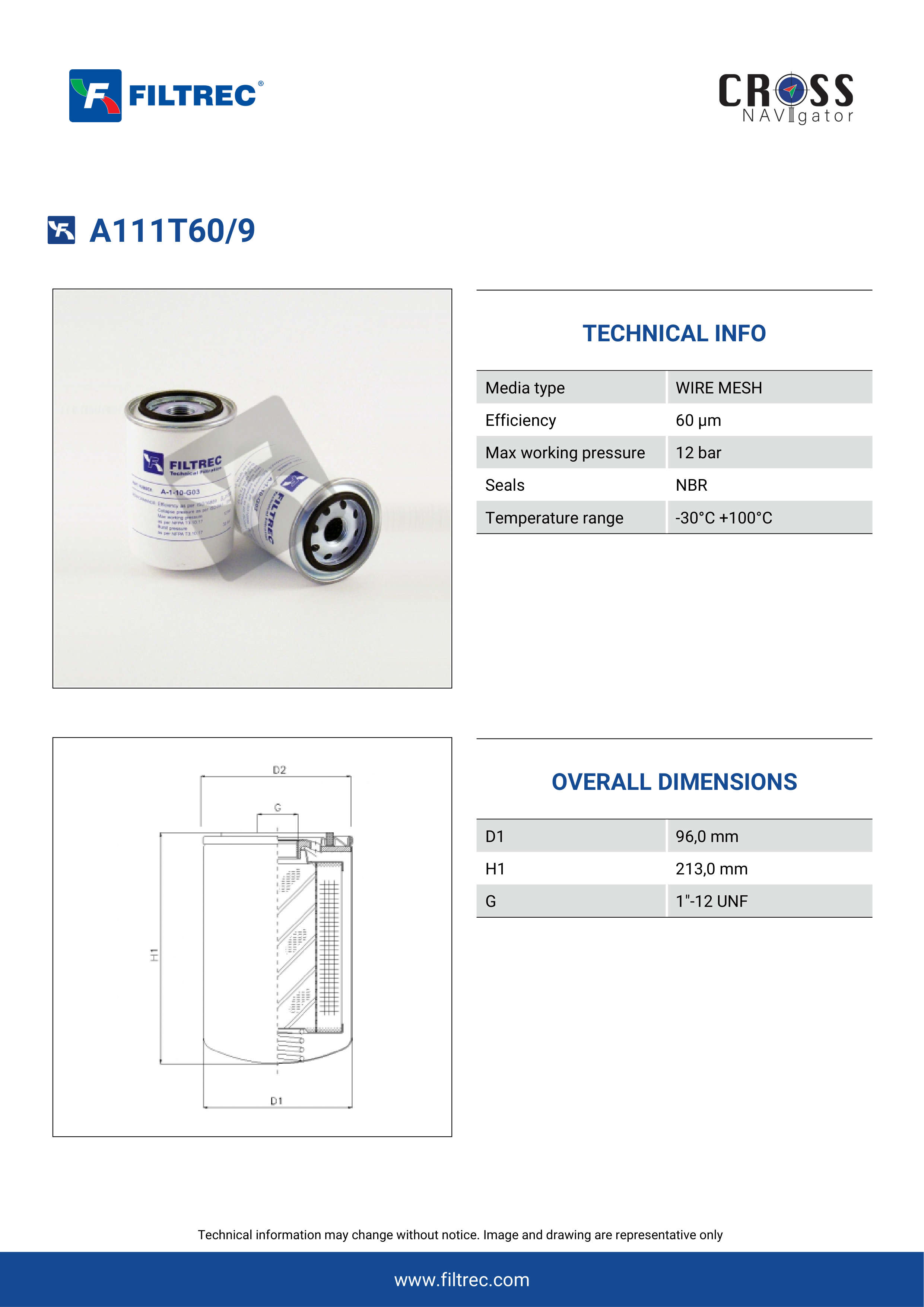 The efficiency of the element is shown using the Micron (µ) and Beta (β) ratings. The micron rating indicates the size of the particle being filtered and the beta rating the efficiency, calculated as 1/β.