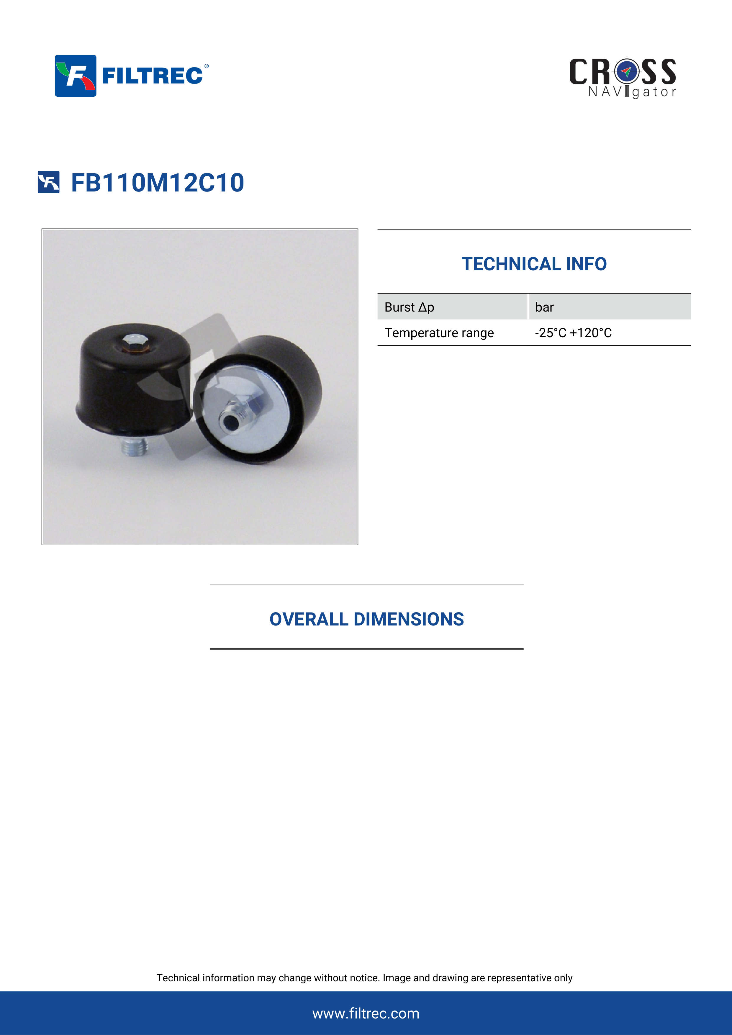 Genuine Filtrec FB110M12C10. This Filtrec element is designed to meet or exceed the quality and performance of brand OEM’s ensuring superior filtration performance and long-lasting durability.Engineered with their high performance media and a durable design, the FB110M12C10 provides reliable and consistent performance over its lifespan, even in harsh operating environments. When you order from FilterFinder, you can trust that you are getting a reliable and high-quality replacement filter that will keep your system running smoothly.