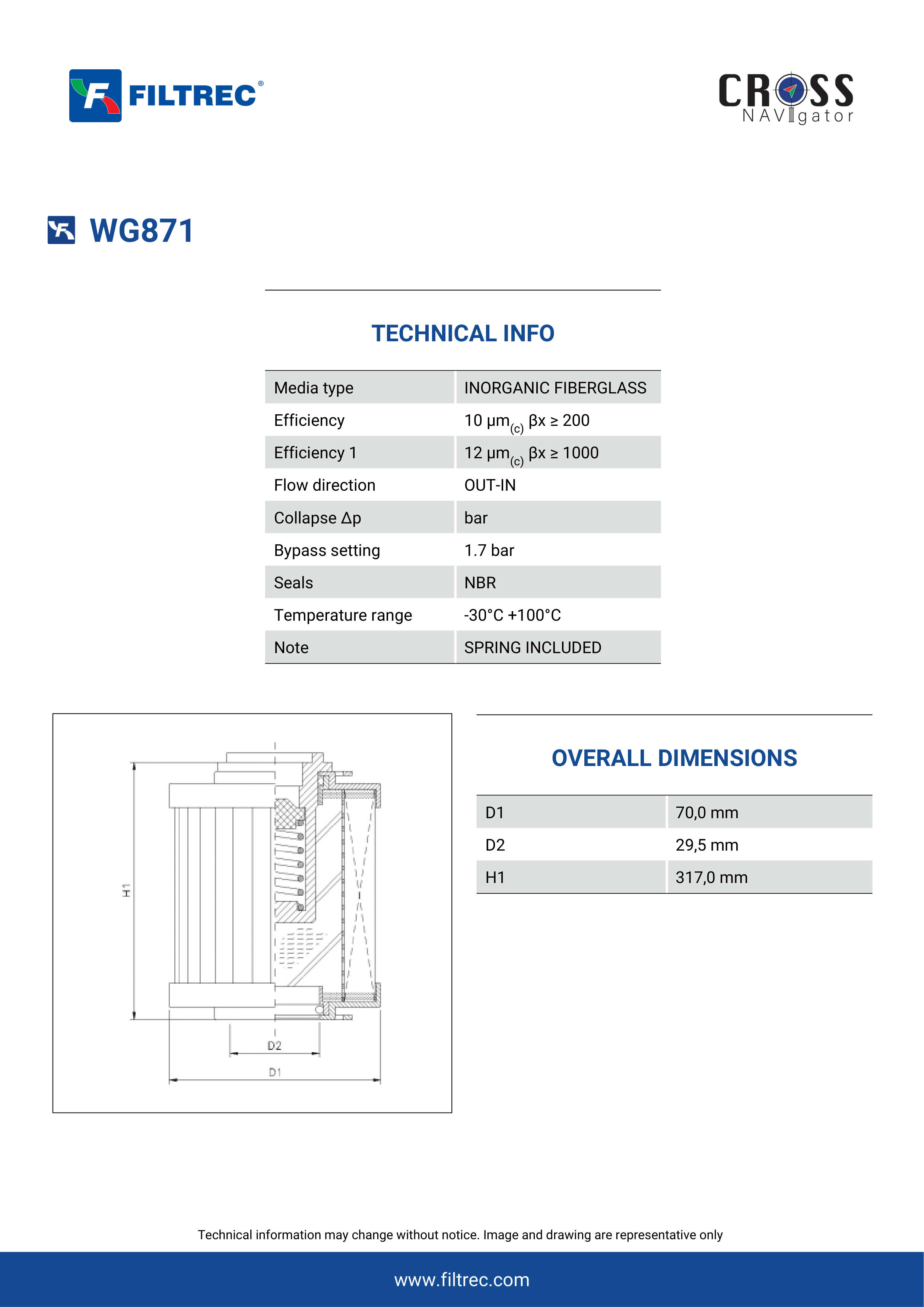 Genuine Filtrec WG871. This Filtrec element is designed to meet or exceed the quality and performance of brand OEM’s ensuring superior filtration performance and long-lasting durability.