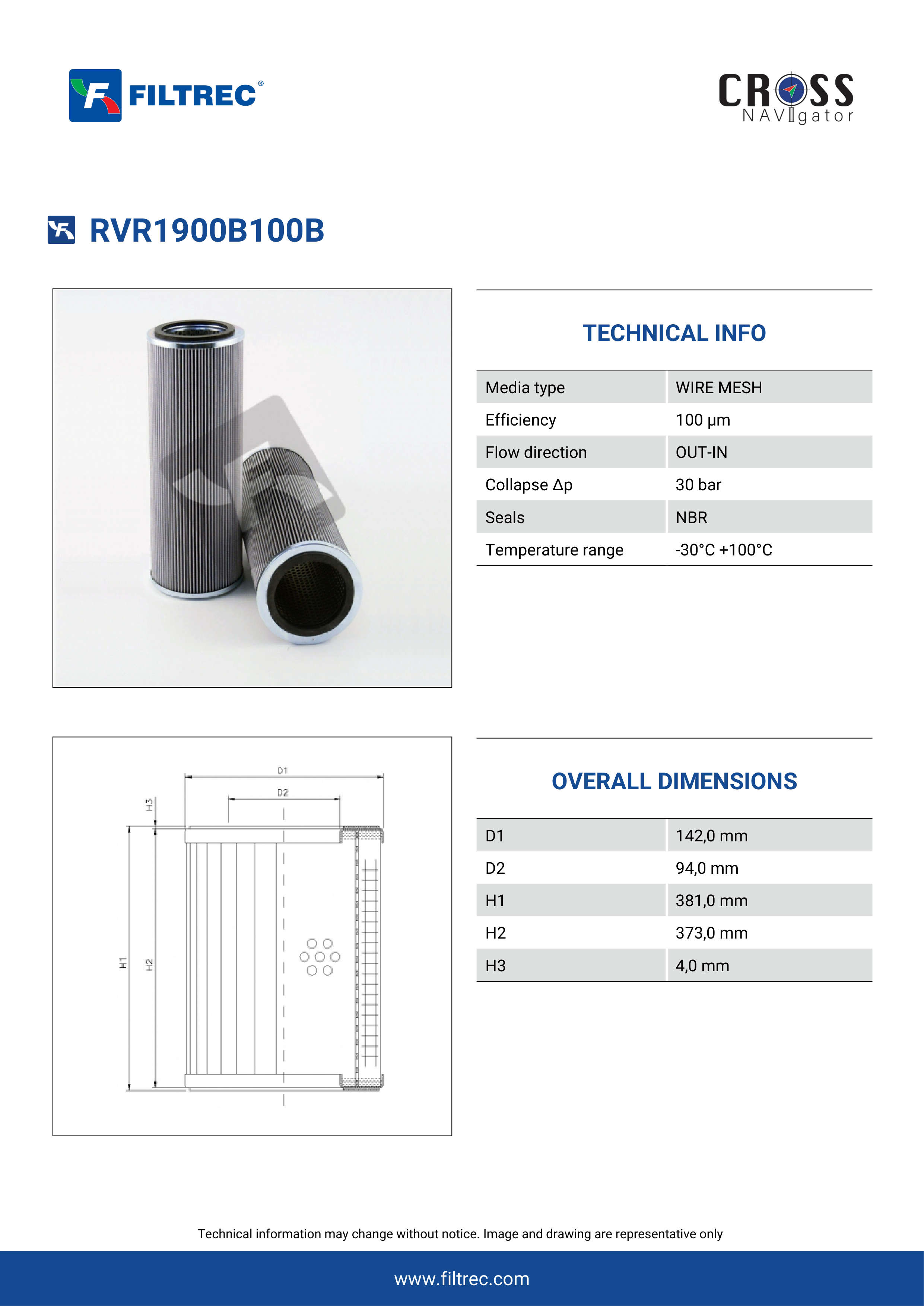 Filtrec RVR1900B100B Replaces the FilterFinder FF200935B