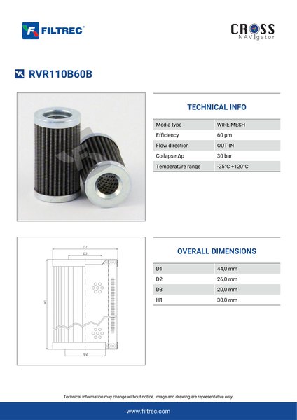 Filtrec RVR110B60B Replaces the FilterFinder FF202796B