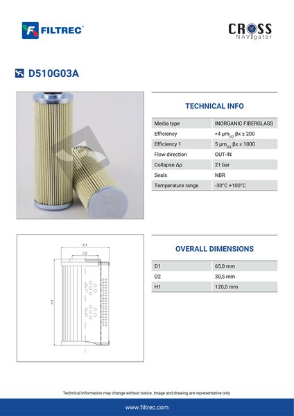 The efficiency of the element is shown using the Micron (µ) and Beta (β) ratings. The micron rating indicates the size of the particle being filtered and the beta rating the efficiency, calculated as 1/β.