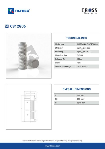 Engineered with their high performance media and a durable design, the C812G06 provides reliable and consistent performance over its lifespan, even in harsh operating environments. When you order from FilterFinder, you can trust that you are getting a reliable and high-quality replacement filter that will keep your system running smoothly.
