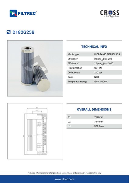 Filtrec D182G25B Replaces the FilterFinder FF203011B