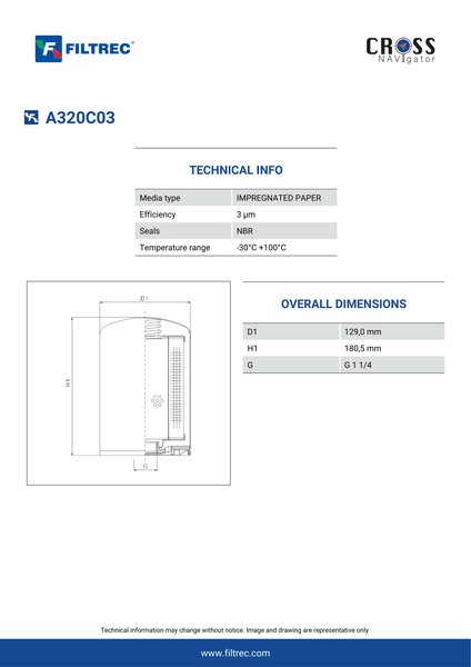 Filtrec A320C03 Replaces the FilterFinder FF203185B
