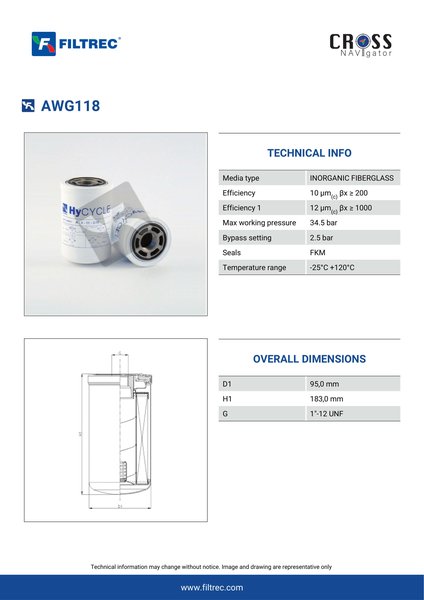 Filtrec AWG118 Replaces the FilterFinder FF203211B