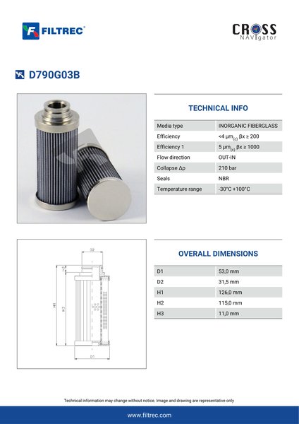 Engineered with their high performance media and a durable design, the D790G03B provides reliable and consistent performance over its lifespan, even in harsh operating environments. When you order from FilterFinder, you can trust that you are getting a reliable and high-quality replacement filter that will keep your system running smoothly.