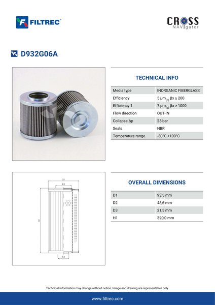 Filtrec D932G06A Replaces the FilterFinder FF203296B