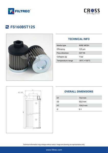The efficiency of the element is shown using the Micron (µ) and Beta (β) ratings. The micron rating indicates the size of the particle being filtered and the beta rating the efficiency, calculated as 1/β.