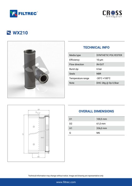 Genuine Filtrec WX210. This Filtrec element is designed to meet or exceed the quality and performance of brand OEM’s ensuring superior filtration performance and long-lasting durability.
