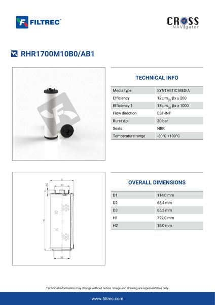 Genuine Filtrec RHR1700M10B0/AB1. This Filtrec element is designed to meet or exceed the quality and performance of brand OEM’s ensuring superior filtration performance and long-lasting durability.Engineered with their high performance media and a durable design, the RHR1700M10B0/AB1 provides reliable and consistent performance over its lifespan, even in harsh operating environments. When you order from FilterFinder, you can trust that you are getting a reliable and high-quality replacement filter that will keep your system running smoothly.
