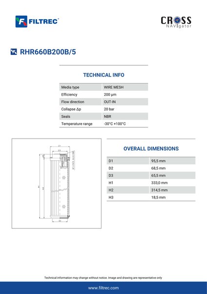 The efficiency of the element is shown using the Micron (µ) and Beta (β) ratings. The micron rating indicates the size of the particle being filtered and the beta rating the efficiency, calculated as 1/β.