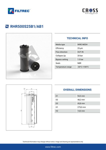 The efficiency of the element is shown using the Micron (µ) and Beta (β) ratings. The micron rating indicates the size of the particle being filtered and the beta rating the efficiency, calculated as 1/β.