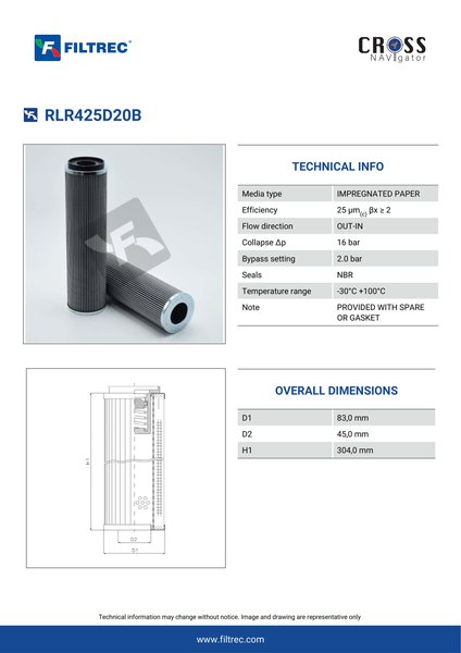 The efficiency of the element is shown using the Micron (µ) and Beta (β) ratings. The micron rating indicates the size of the particle being filtered and the beta rating the efficiency, calculated as 1/β.