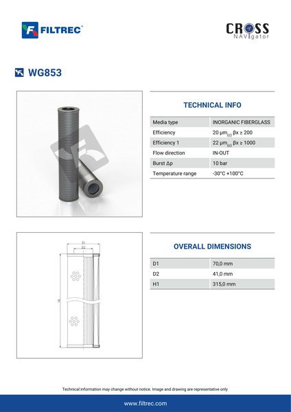 Engineered with their high performance media and a durable design, the WG853 provides reliable and consistent performance over its lifespan, even in harsh operating environments. When you order from FilterFinder, you can trust that you are getting a reliable and high-quality replacement filter that will keep your system running smoothly.