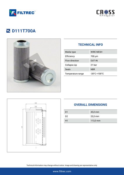 Filtrec D111T700A Replaces the FilterFinder FF211147B