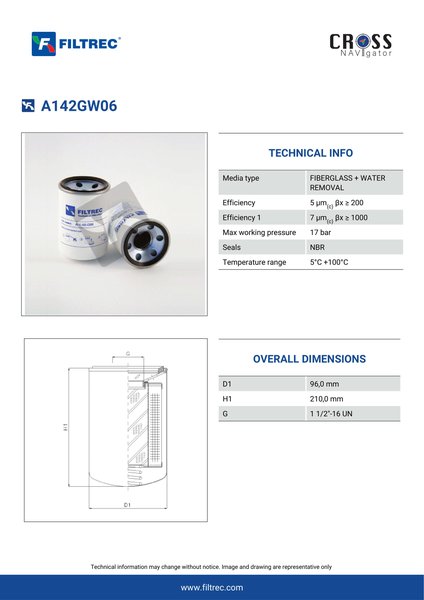 The efficiency of the element is shown using the Micron (µ) and Beta (β) ratings. The micron rating indicates the size of the particle being filtered and the beta rating the efficiency, calculated as 1/β.