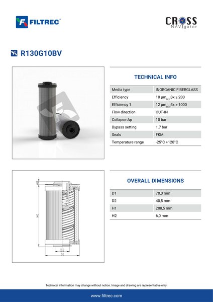 Filtrec R130G10BV Replaces the FilterFinder FF212256B